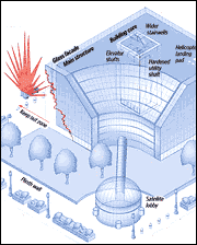 Buffer zones in front of key government buildings would also be increased by eliminating street lanes now used for parking, according to a draft version of the National Capital Planning Commission's Urban Design and Security Plan, a long-awaited federal blueprint for protecting the nation's capital from attack by an explosives-laden vehicle. The Jefferson and Lincoln memorials could be protected with grade changes that form barriers, the report says, and Pennsylvania Avenue in front of the White House should become a Paris-style park that can be reopened for parades or mass transit. The $878 million plan - which would replace the capital's current haphazard system of concrete barriers, street closures, and temporary guardshacks - is part of a nationwide effort to redesign buildings, public facilities, and urban areas to make them more secure following the terrorist attacks of Sept. 11. In the future, for example, federal facilities, office buildings, and airports may be designed with lobbies and receiving areas set apart, so that people are screened at a distance and then funneled into the main part of buildings through a security ''throat.'' A redesign of this kind has been proposed for Los Angeles International Aiport, the scene of a deadly July Fourth shooting at the El Al ticket counter. The Washington plan recommends a ''unified and coordinated approach'' that ''gracefully provides perimeter ... security, avoiding the monotony of endless lines of Jersey barriers and bollards, which only evoke defensiveness,'' according to the draft language. After some points of contention are worked out with officials of the District of Columbia - who are concerned about traffic flow and the removal of parking lanes - as well as with a dozen federal agencies - which generally want more ''standoff'' space and more street closures - the plan is set to be released for public comment and then sent to President Bush and Congress. Though the plan is specifically oriented to Washington, the strategies can be adopted by cities such as Boston, according to Boston developer Richard Friedman, chairman of the task force responsible for the report, and the Cambridge-based architectural firm that consulted on the plan. Reinforced benches, planters, and trash receptacles could replace Jersey barriers and steel fences at the new federal courthouse on Fan Pier or the federal building at City Hall Plaza, for example. The idea is to improve security while maintaining public access and an attractive streetscape, said Alex Krieger, principal in the architectural firm Chan, Krieger in Cambridge, the lead consultant for the report. Otherwise security needs will be addressed with barricades and street and building closures, which ''will fundamentally change the public environment in ways that I don't think people are really aware of.'' The issues raised in the National Capital Planning Commission plan are typical of the emerging debate on how to strengthen the nation's physical landscape post-Sept. 11. Business and government leaders seek dramatic steps to deter future attack; architects and planners, on guard against what they view as excessive or unnecessary measures, are more attentive to aesthetics and public access. Additionally, some doubts have already been raised about the cost-effectiveness of ''curbside security'' measures recommended in the commission's draft report. Backers of the plan say the $878 million price tag is roughly $200 million more than what federal agencies would spend on protecting their properties on their own. Even so, the measures recommended in the report would not protect federal workers and visitors to Washington against a nuclear or biological attack or a suicide bomber on foot. In addition, some streets are so narrow in Washington that an explosives-laden truck could simply park in the middle of them and damage buildings on either side. Oscar Newman, an architect and city planner who has served as a consultant to governments on security and design, said that the front yards of buildings can be landscaped to prevent a van from getting close. But such measures protect against perhaps 10 percent of possible attacks, he said. ''They are effective in reducing the risk you've thought of, but not the one you haven't thought of,'' he said. Terrorists ''are people thinking long and hard about how to destroy major buildings and create chaos. If they see barriers and guards, they'll just think of another way in,'' added Newman, author of the 1973 book, ''Defensible Space,'' on using urban design to address crime. Curbside security measures can make federal employees ''more comfortable coming to work in the morning, but there are just too many openings,'' Newman said, adding: ''If you have money for security, use 90 percent of it to go after the likely perpetrators - tracking them down in this country.'' Friedman - who was appointed by President Clinton to the National Capital Planning Commission and has remained to head the interagency task force on security under President Bush's commission chairman, John Cogbill III - said it was worthwhile to protect against vehicle bombs, which constitute 80 percent of terrorist attacks worldwide. And there is no reason the barricades can't look nice, said Friedman, who has been distressed by the way ad-hoc security measures have sullied Pierre L'Enfant's time-honored design for the capital. ''We can have both good urban design and good security,'' Friedman said. The public realm should express the values of a free and open society, he said, while at the same time providing a formidable barrier to the kinds of attacks that can be defended against. Friedman described the commission report as a ''work in progress,'' and stressed that several details needed to be ironed out with the many agencies and jurisdictions involved in the effort. ''Our goal is to reach consensus in the next 10 days, and have the report available in two weeks for public comment.'' The draft