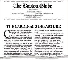 On April 10, 2002, a Globe editorial called for Cardinal Bernard F. Law to resign.