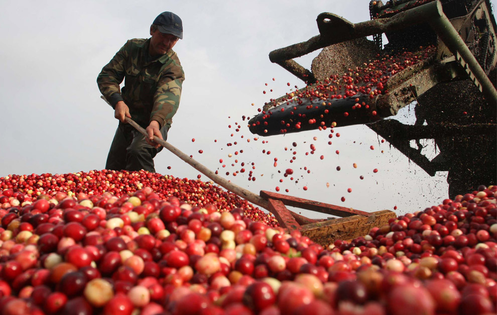 In this photo provided by the Wisconsin State Cranberry Growers Association, Darren Storkel drives a raking machine near Tomah, Wis., Monday, Oct. 6, 2008, during the fall cranberry harvest. The U.S. Department of Agriculture projects that Wisconsin will yield 3.85 million barrels of cranberries, nearly a 4 percent increase over last year's crop. (AP Photo/Wisconsin State Cranberry Growers Association, Andy Manis) #